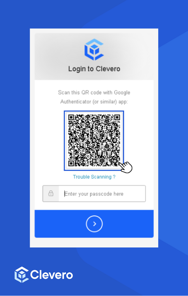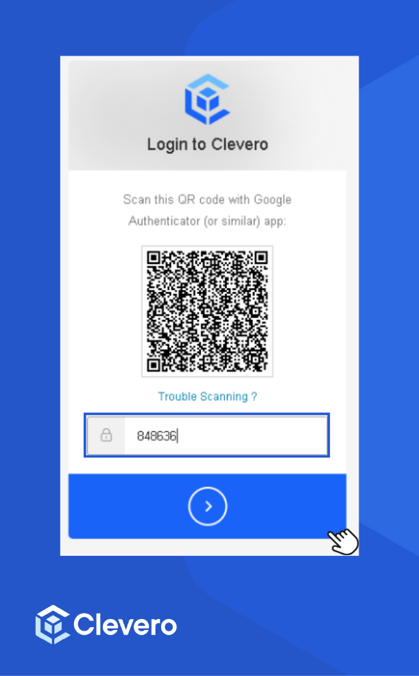 - Paste the copied code into the field on the Clevero app's 2FA page. Click the login button.