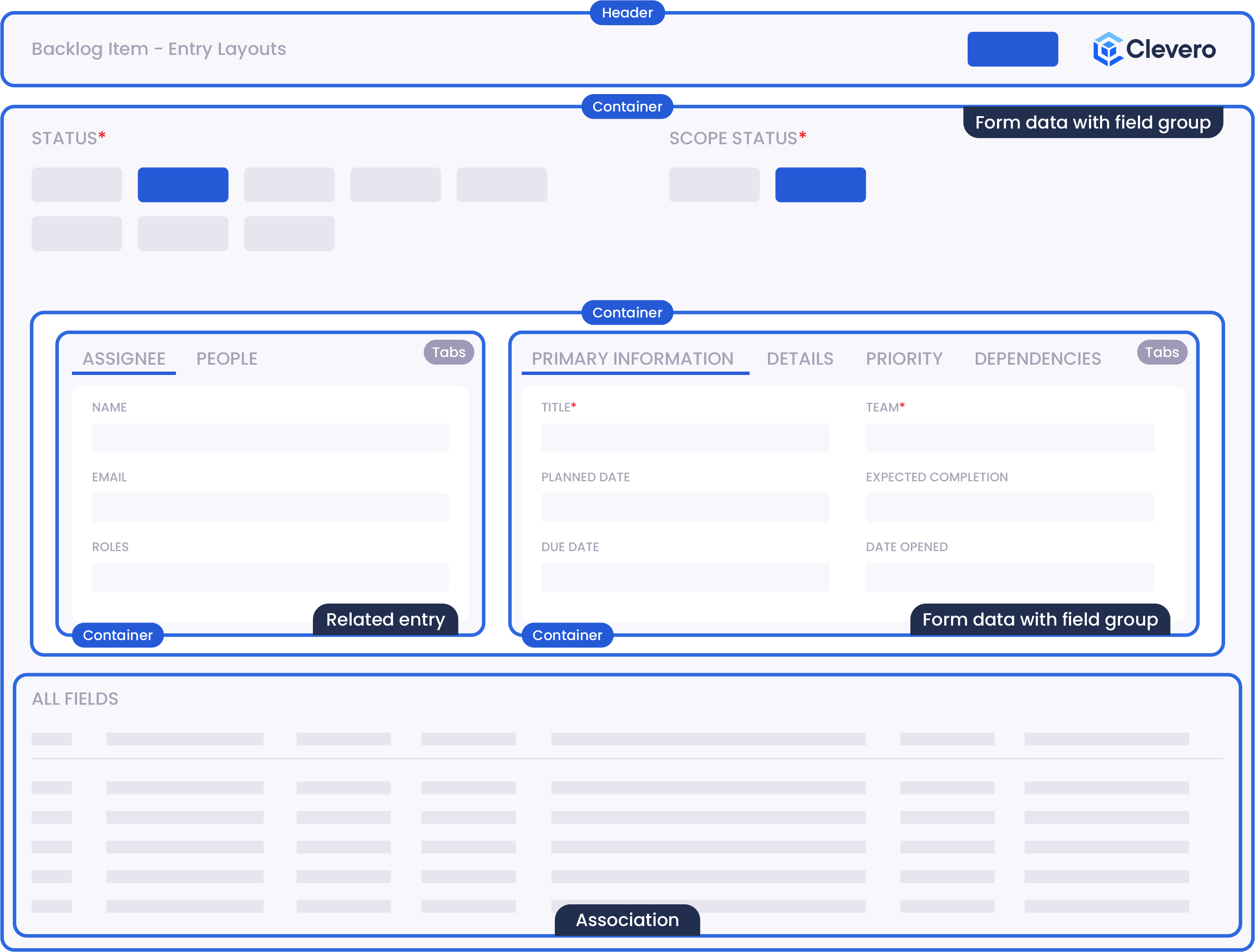 | Header | The Header serves as the topmost section of the Entry Layout. It may also incorporate the action button and an option for easy usability. |
