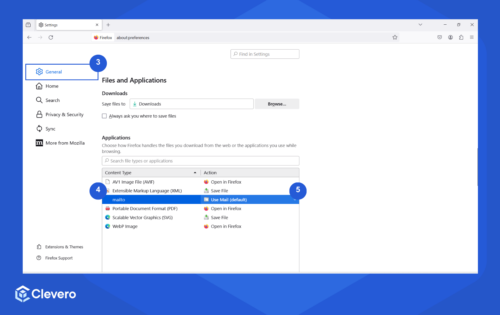 - Click the drop-down menu under the Action column and select your desired default email client (e.g. Gmail).