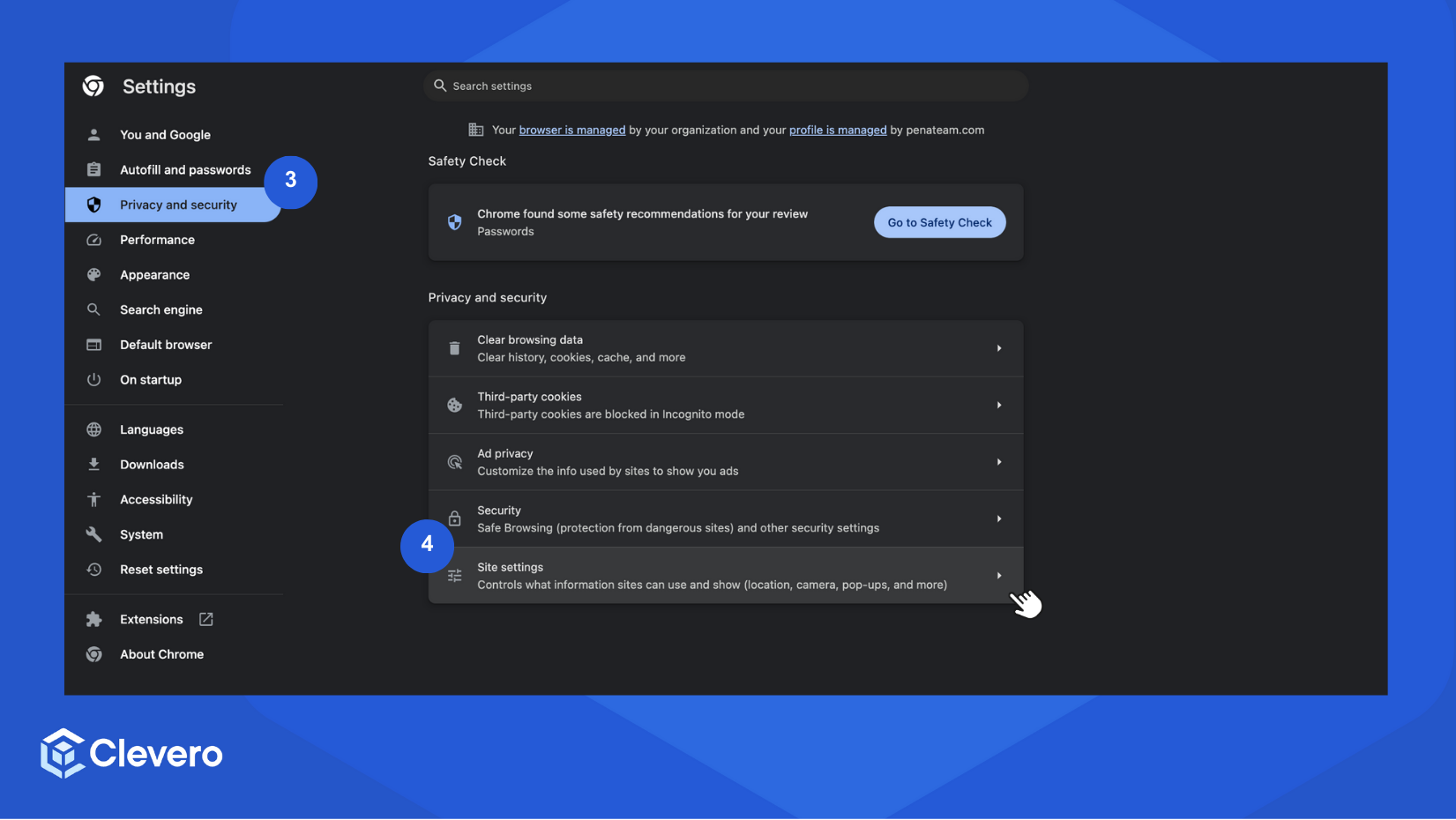 - Select Privacy and security from the sidebar.