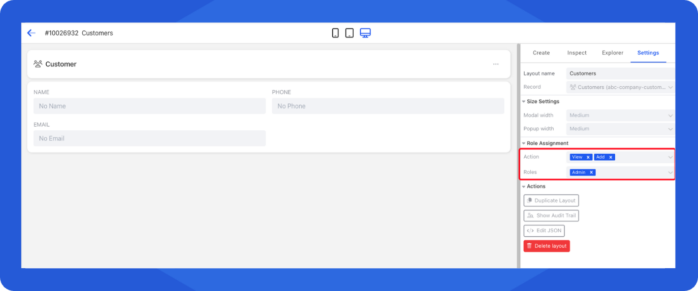 - On your Entry Layout, click the Settings tab (next to Explorer).