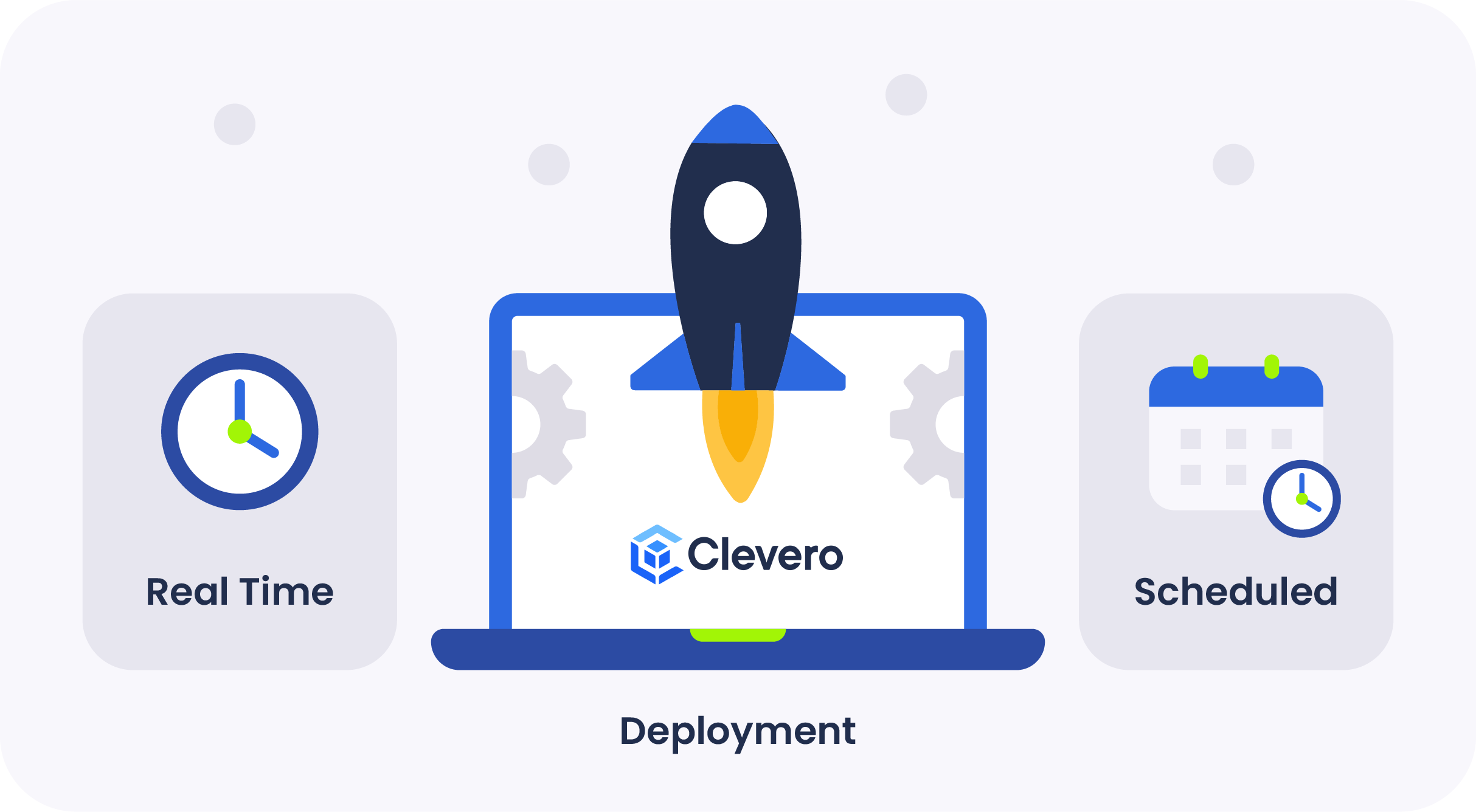 There are two methods of deployment available: Real-Time and Scheduled deployments.