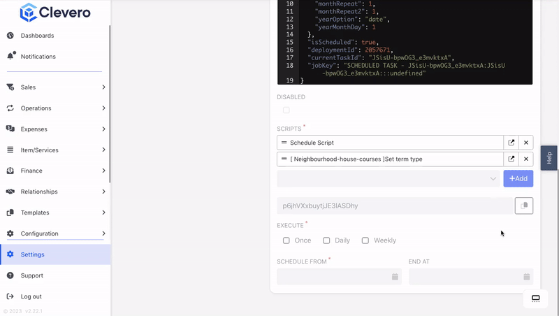 - External Application: It is used to deploy scripts that interface with external applications and services outside the Clevero system.