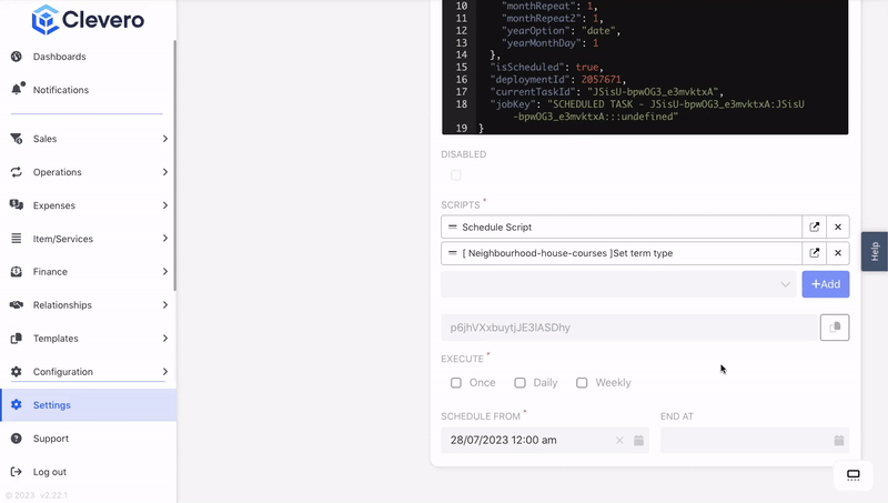 - Click the "Add script" button to create a new scheduled script. Fill in all the provided fields.