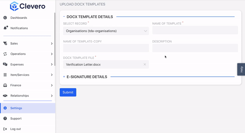 To upload Docx Templates in Clevero, follow these simple steps:
