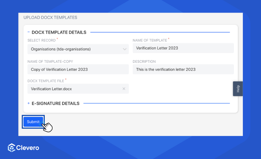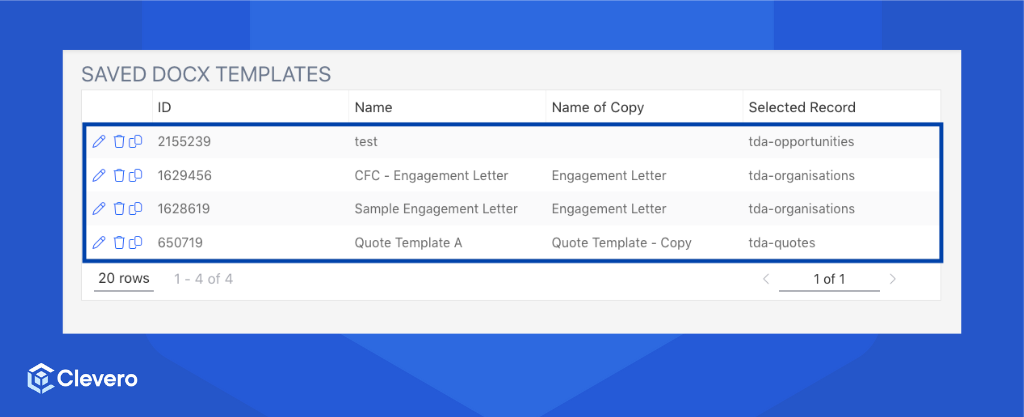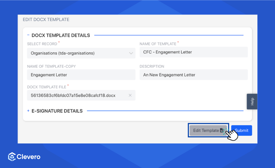 Once you have uploaded your Docx templates, Clevero allows you to customise them to suit your requirements. This will enable you to tailor your document's content, layout, and designs.