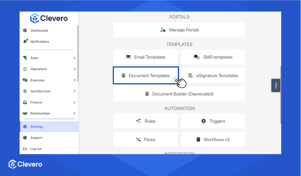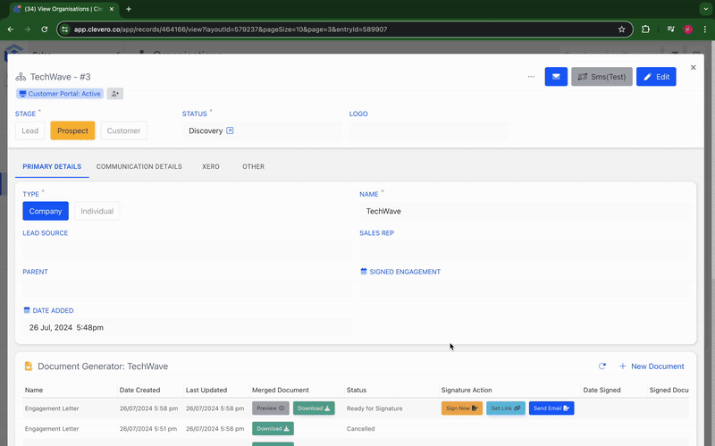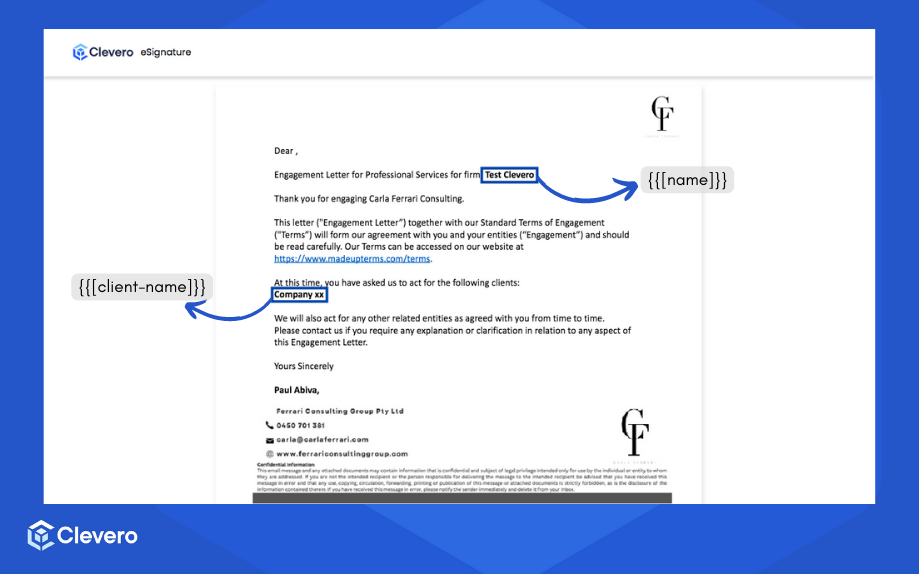 Document Templates in Clevero are pro forma documents that merge record data, creating a unique link for users to access, review, and sign.