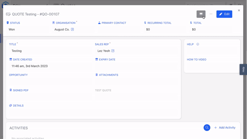 Let's say a sales representative needs to send a follow-up email to a customer. This feature lets the sales representative directly select and email the associated customer contact linked to the sales record. This eliminates the need for manual entry or external searches for email addresses.