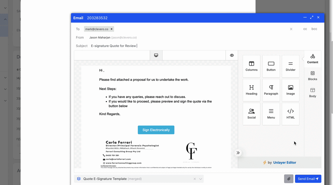 💌 Learn how to compose and send emails using Clevero's email composer tool.