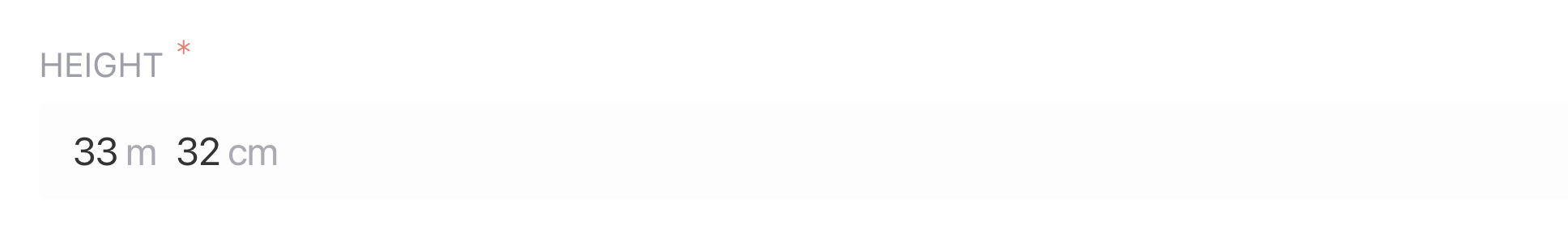 | Height | Stores a height value (e.g., cm, m, ft, in). | ![]() |