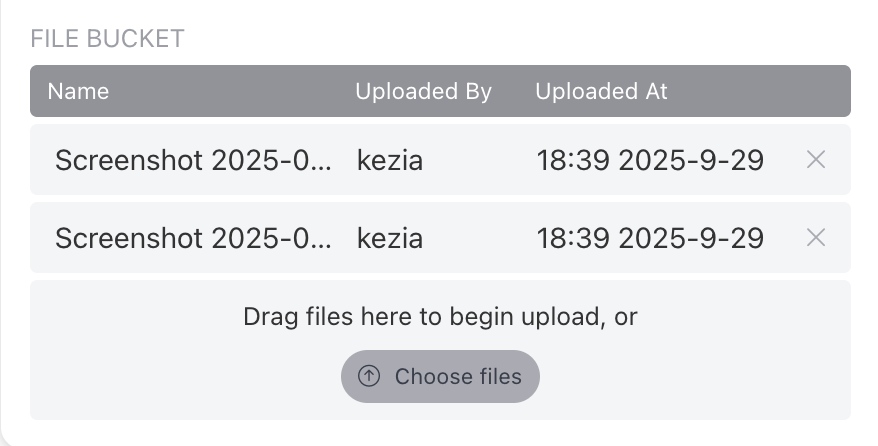 | File Bucket | Supports uploading and storing multiple files together. | ![]() |