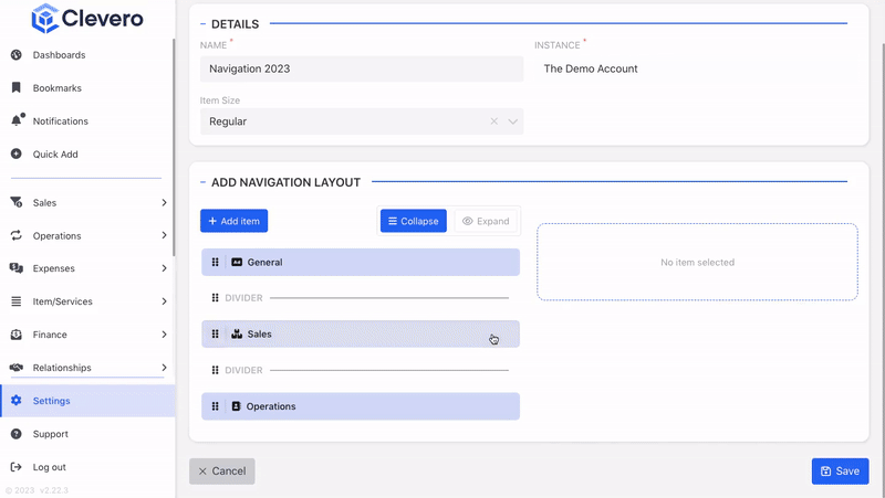- Roles Assignments: Select the user role you'd like to use to set up their navigation layout.