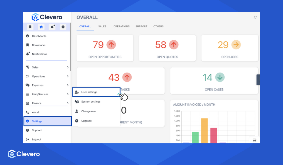 - Click Settings and then proceed to User Settings.