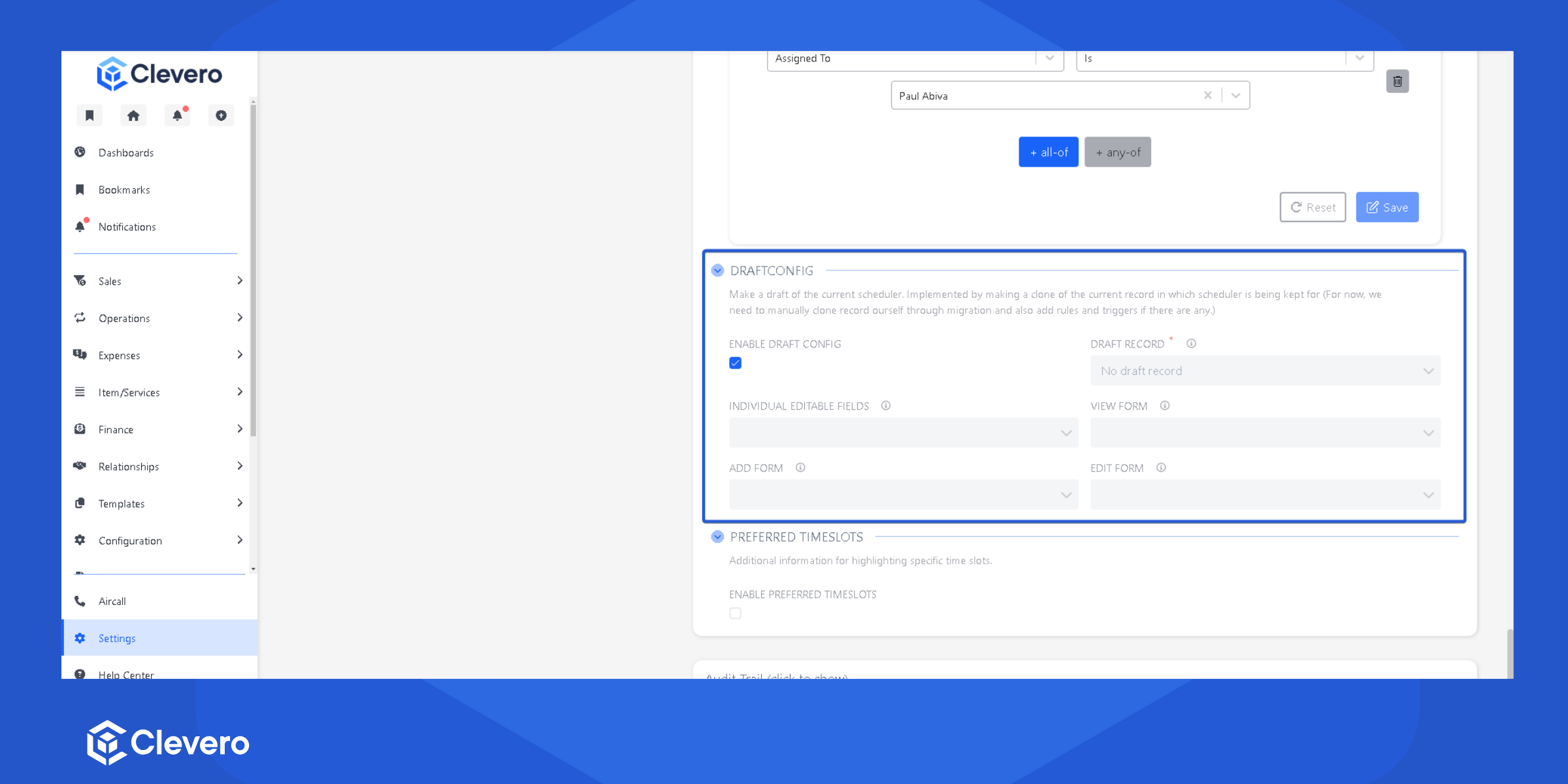 To create a draft of the current scheduler, a clone of the existing record is made. Currently, this process must be done manually through migration. If there are any rules or triggers, they should also be added manually.