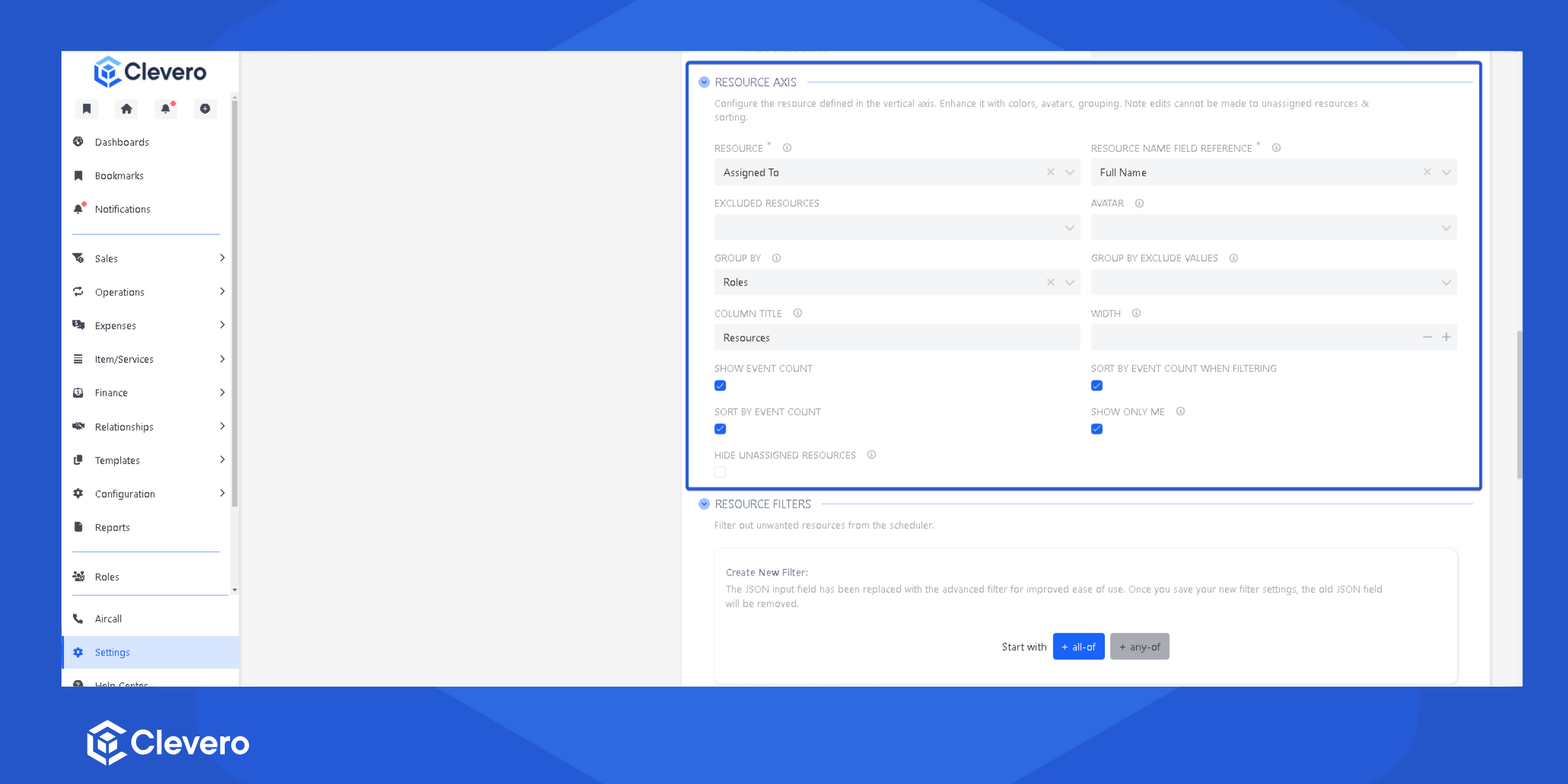 | Hide Unassigned Resources | Shows only resources that have assigned events |