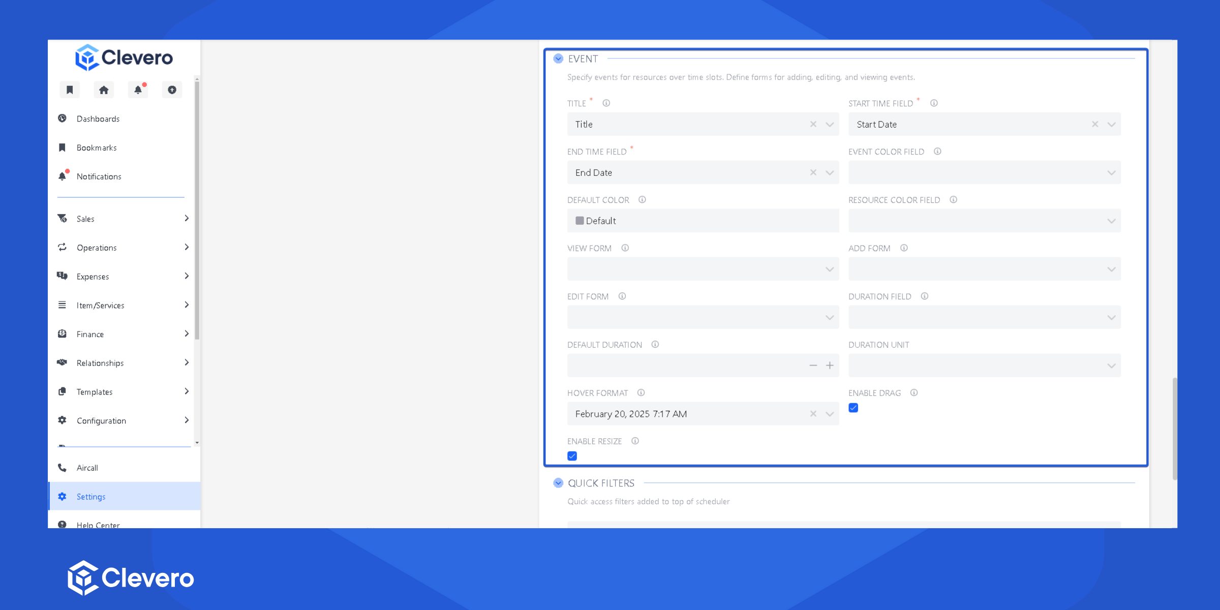 | Enable Resize | Enables adjusting an event’s duration by resizing its edges |