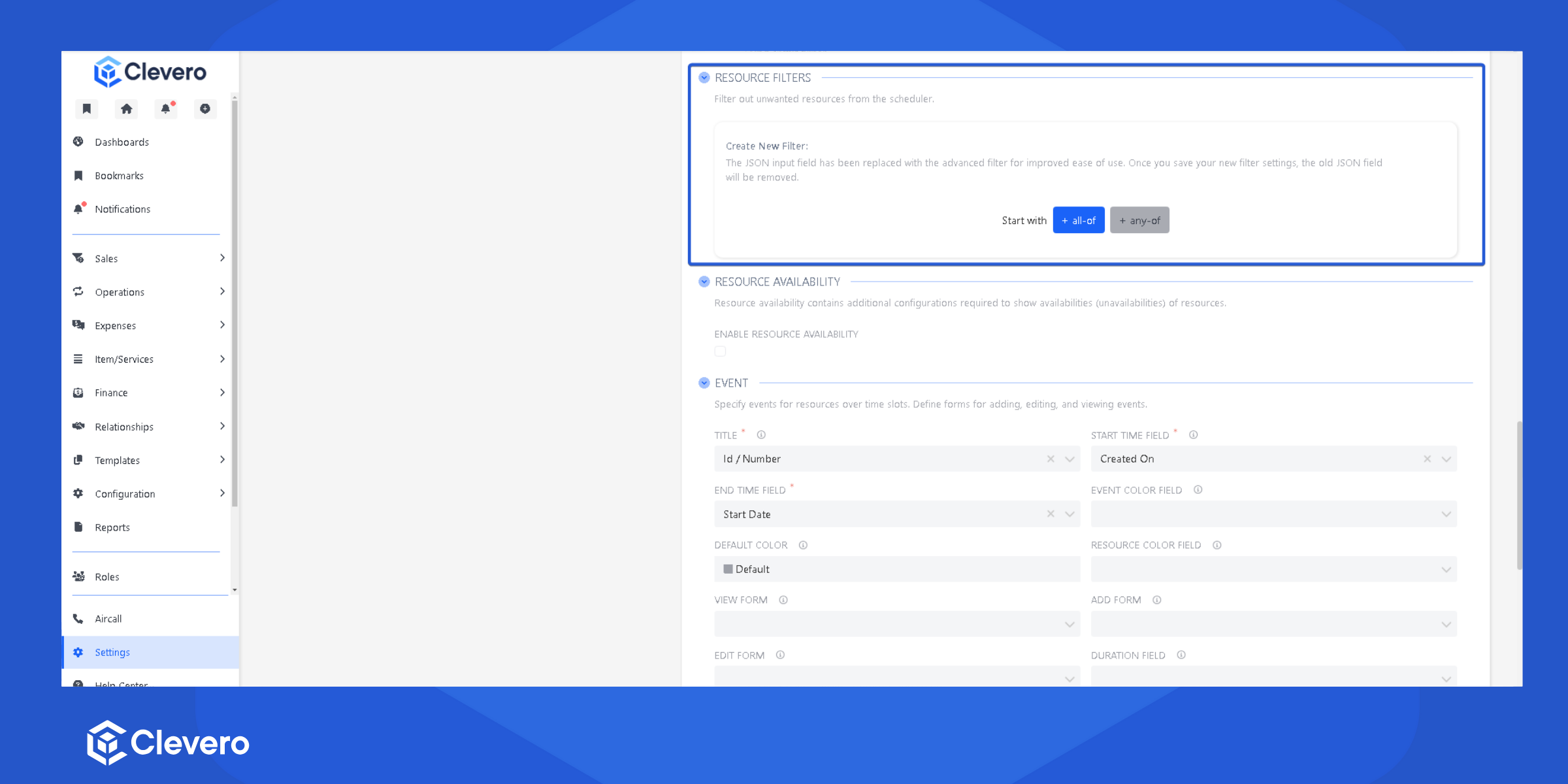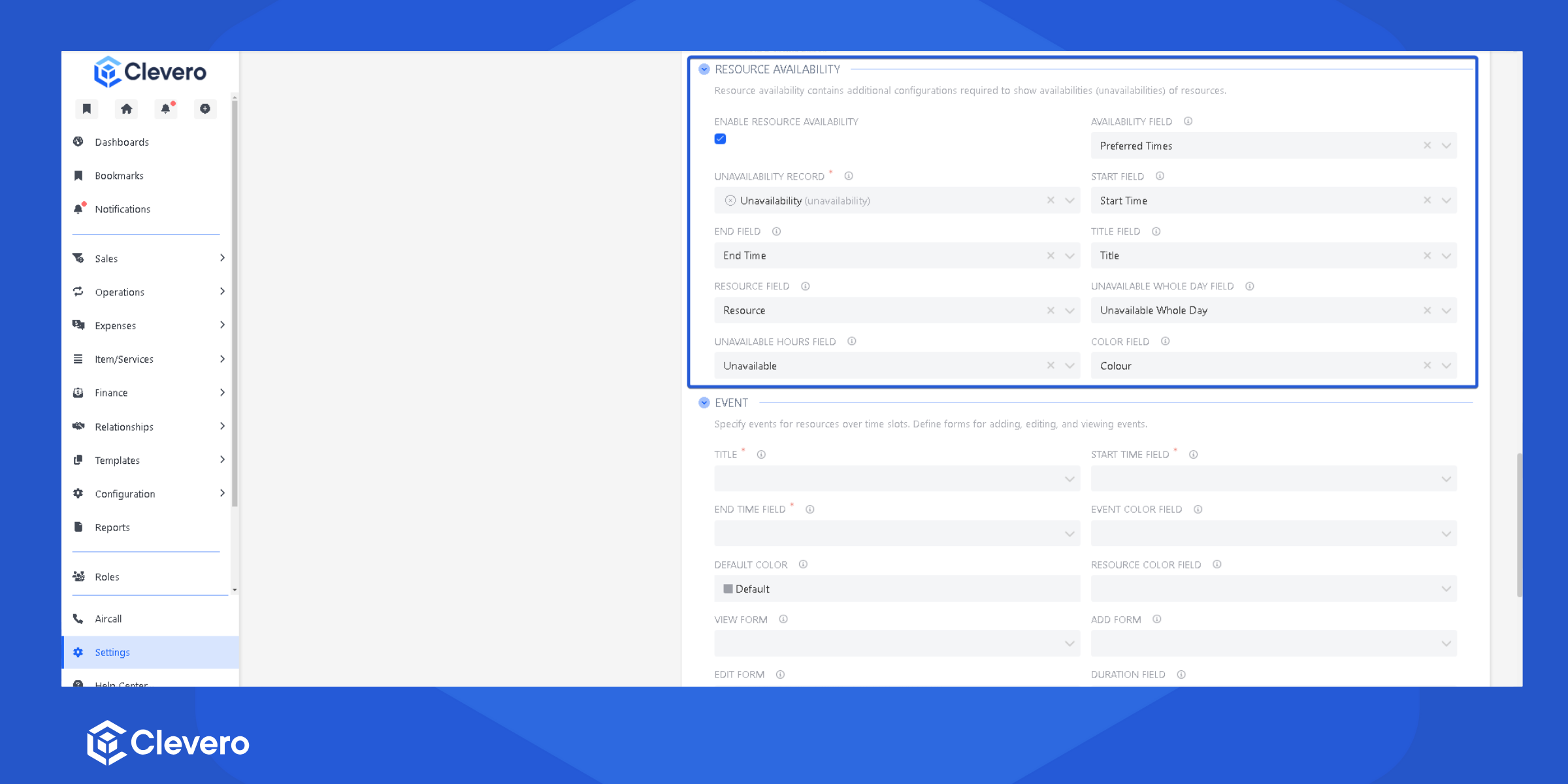 | Enable Resource Availability | Turns on resource availability settings |