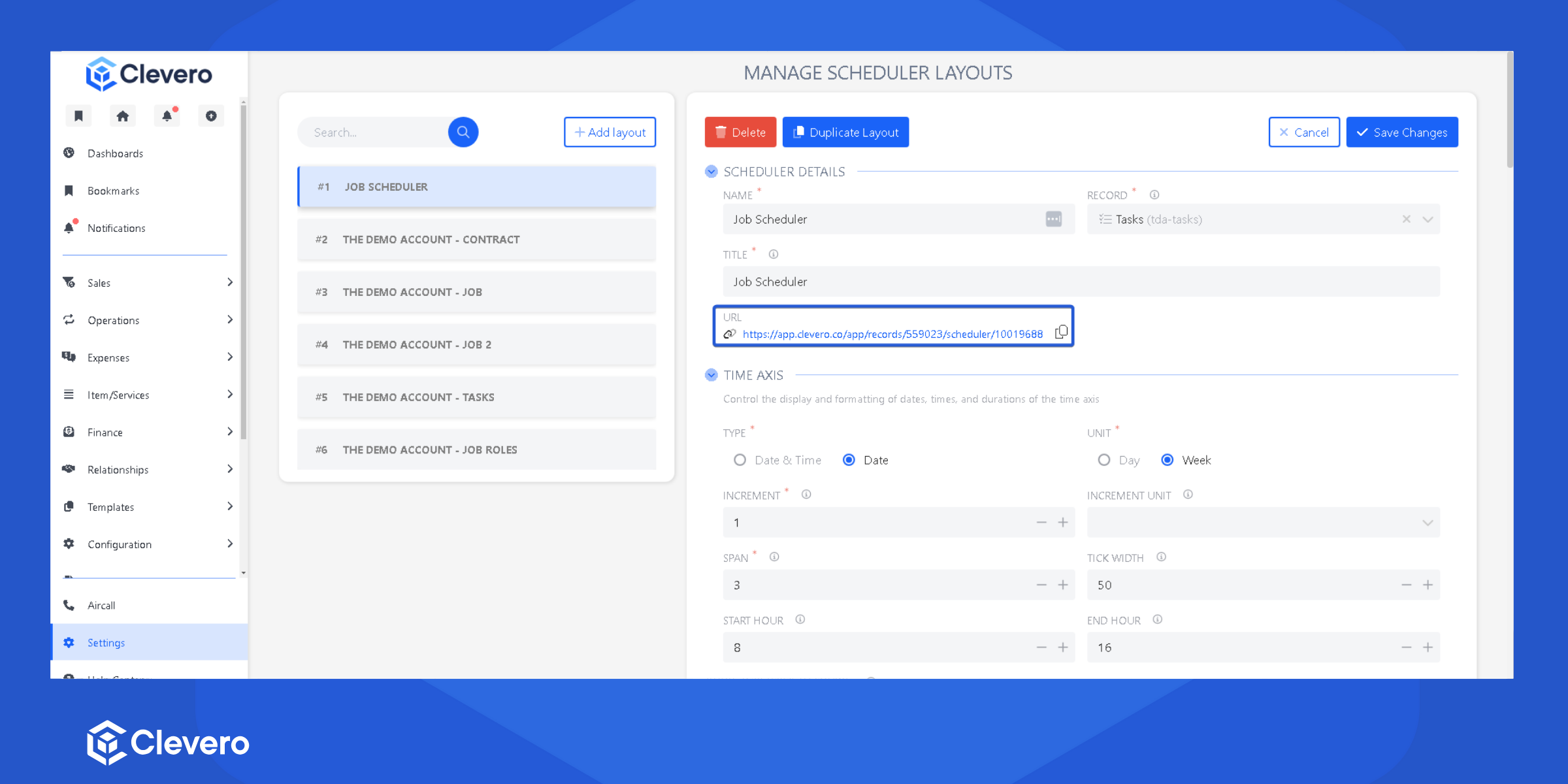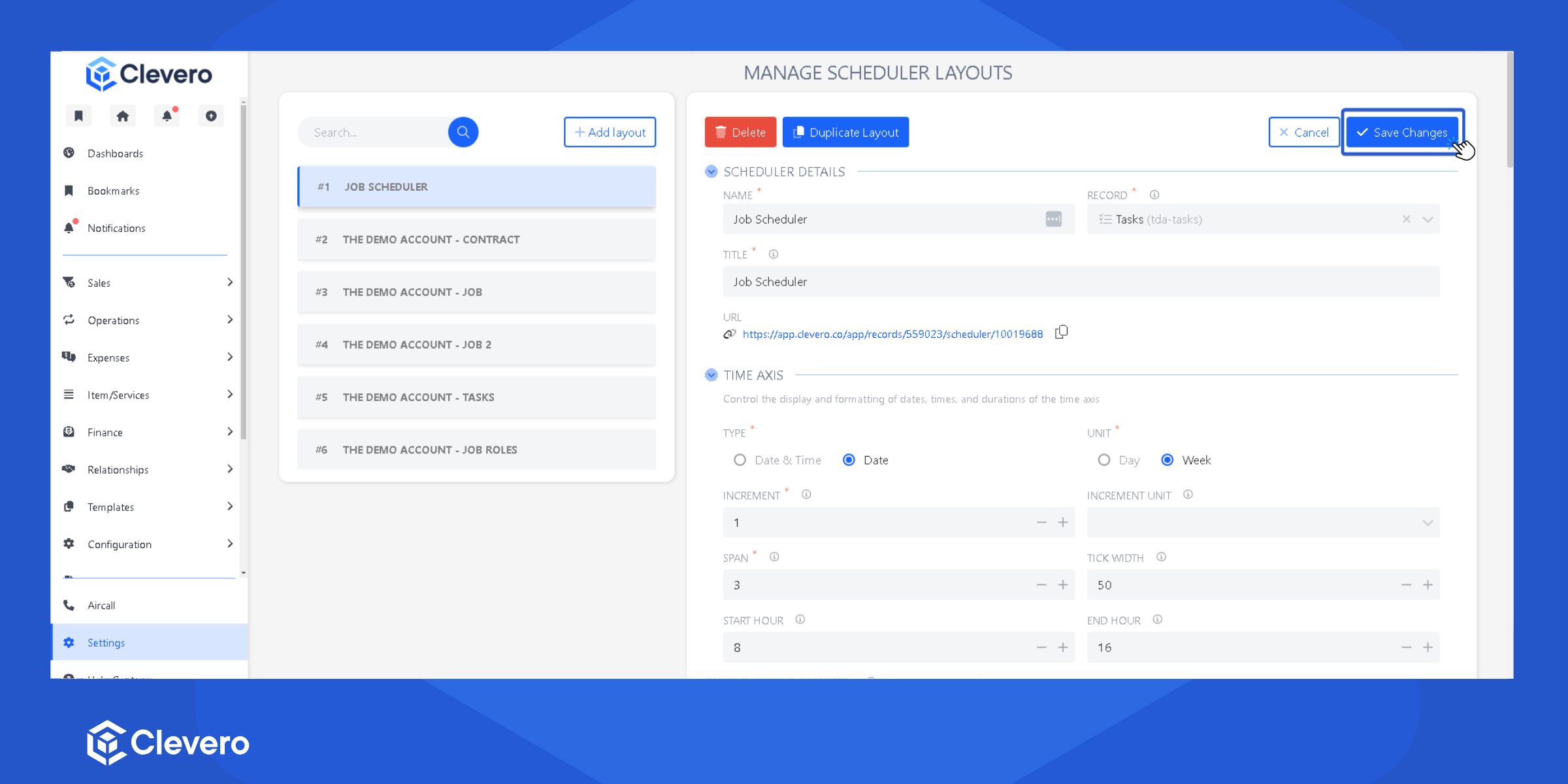 - Click on "Add Layout" to create a new Scheduler Layout.