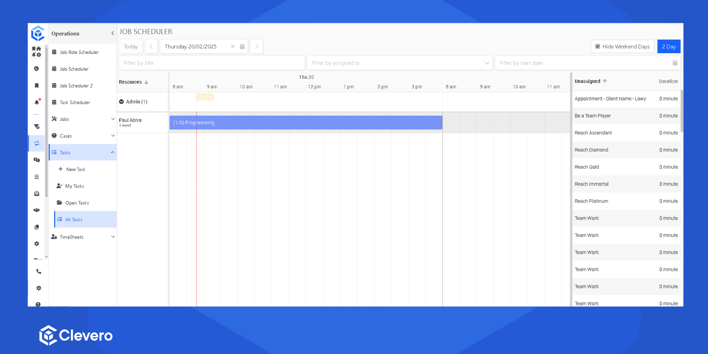 | Hide Weekend | Removes weekends from the scheduler view |
