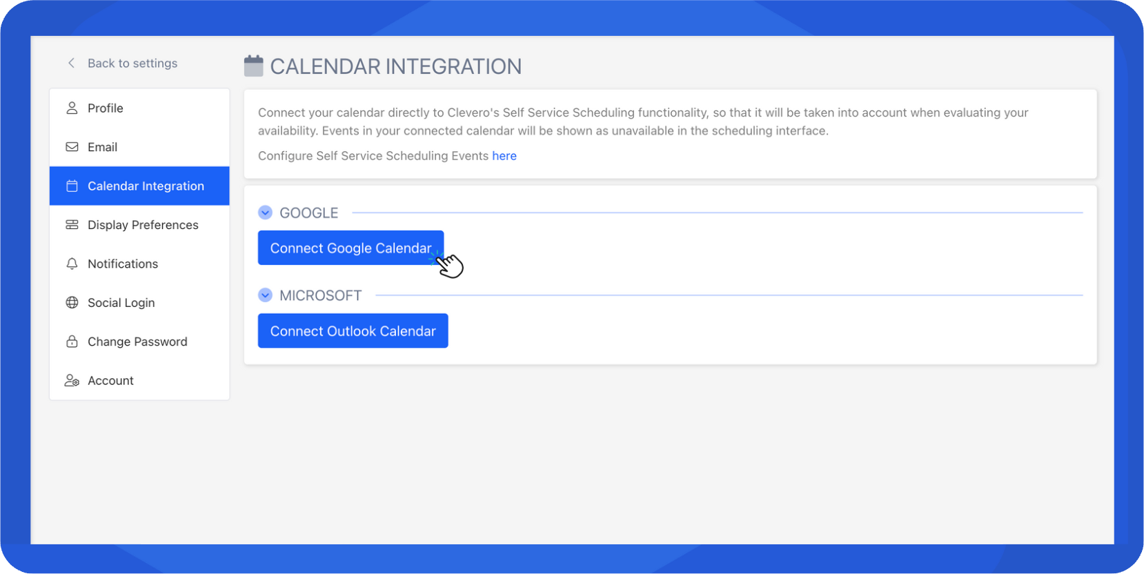 - Integrate your account with Google Calendar to receive booking notifications and automatically sync meetings: