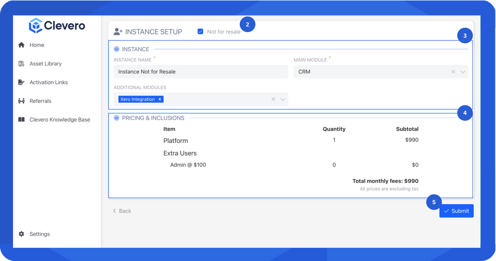 - If the instance is for resale, disable the Not for Resale checkbox.