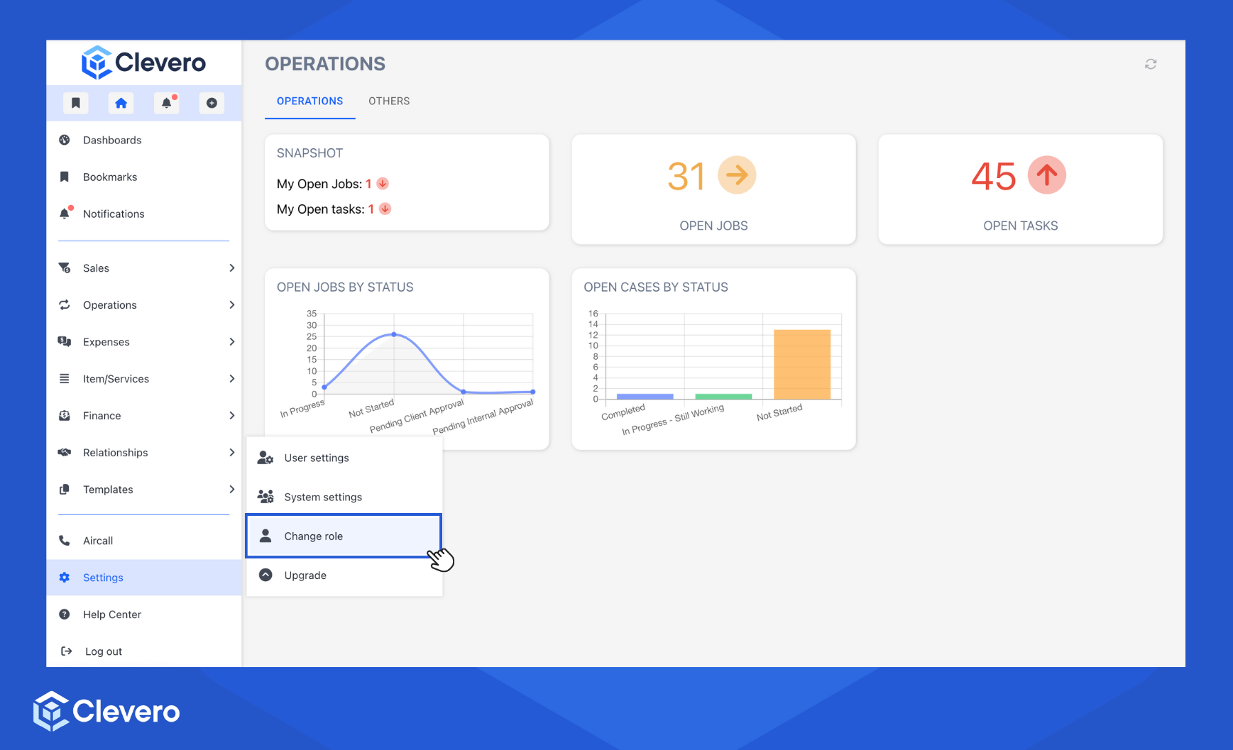 - Go to the "Settings" and select Change role.