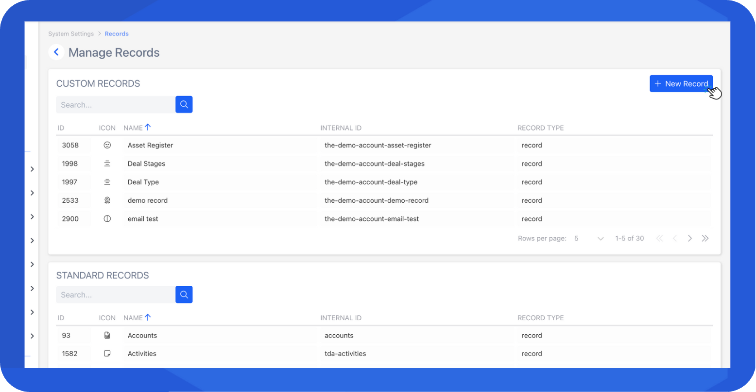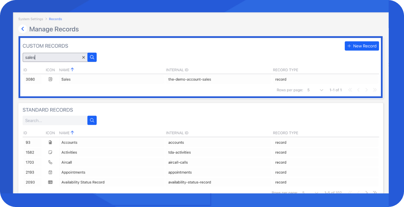 To create or modify a record, follow these steps on the Record Management page of System Settings: