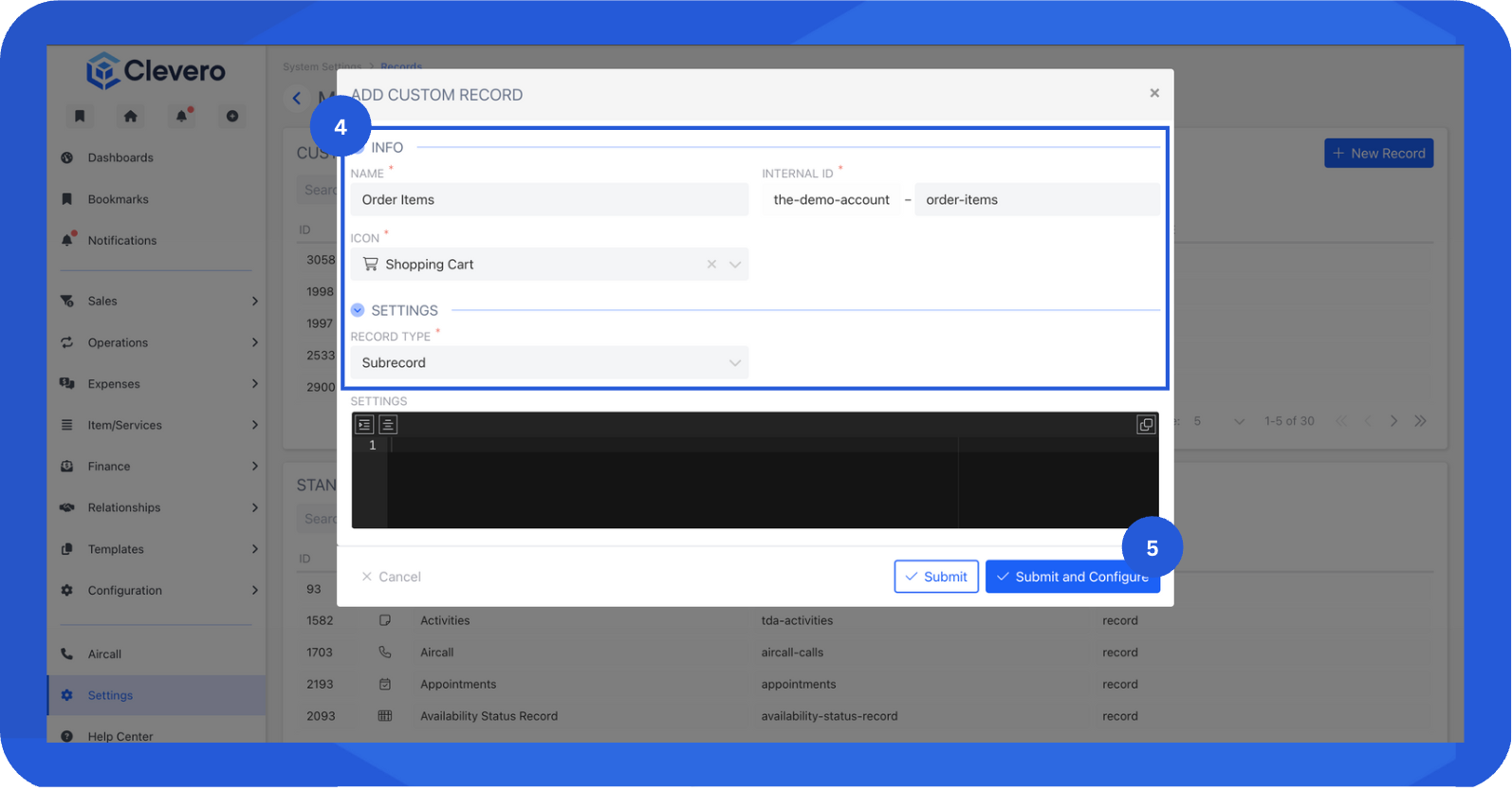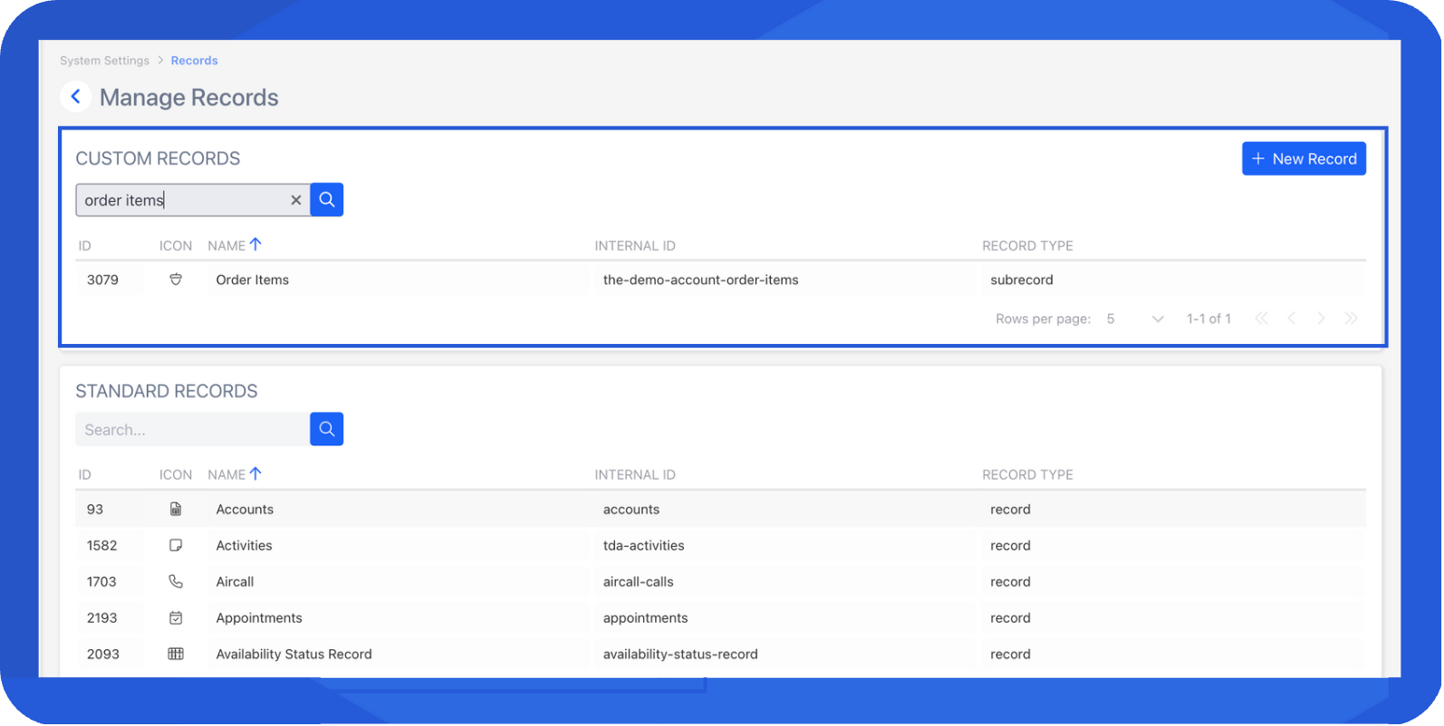 NoteYou can only add sub-records to Custom Records. You can’t modify Standard Records.