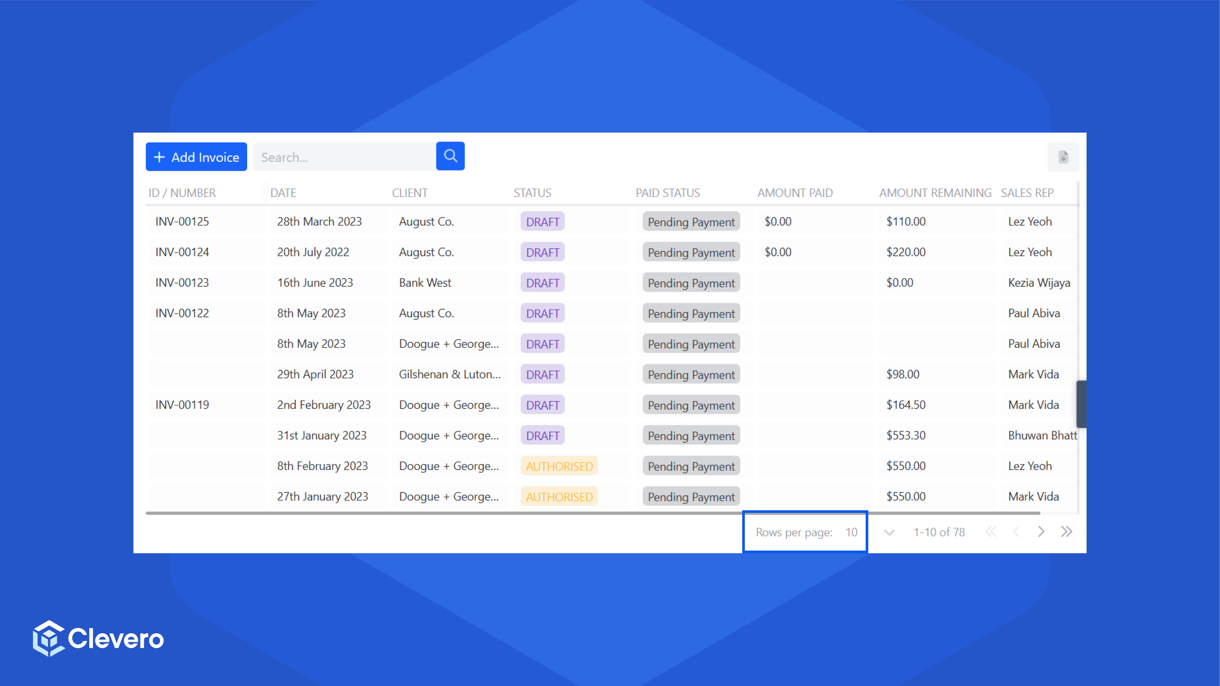 The Table Settings feature allows users to customise how many rows of data are shown by default in the record.