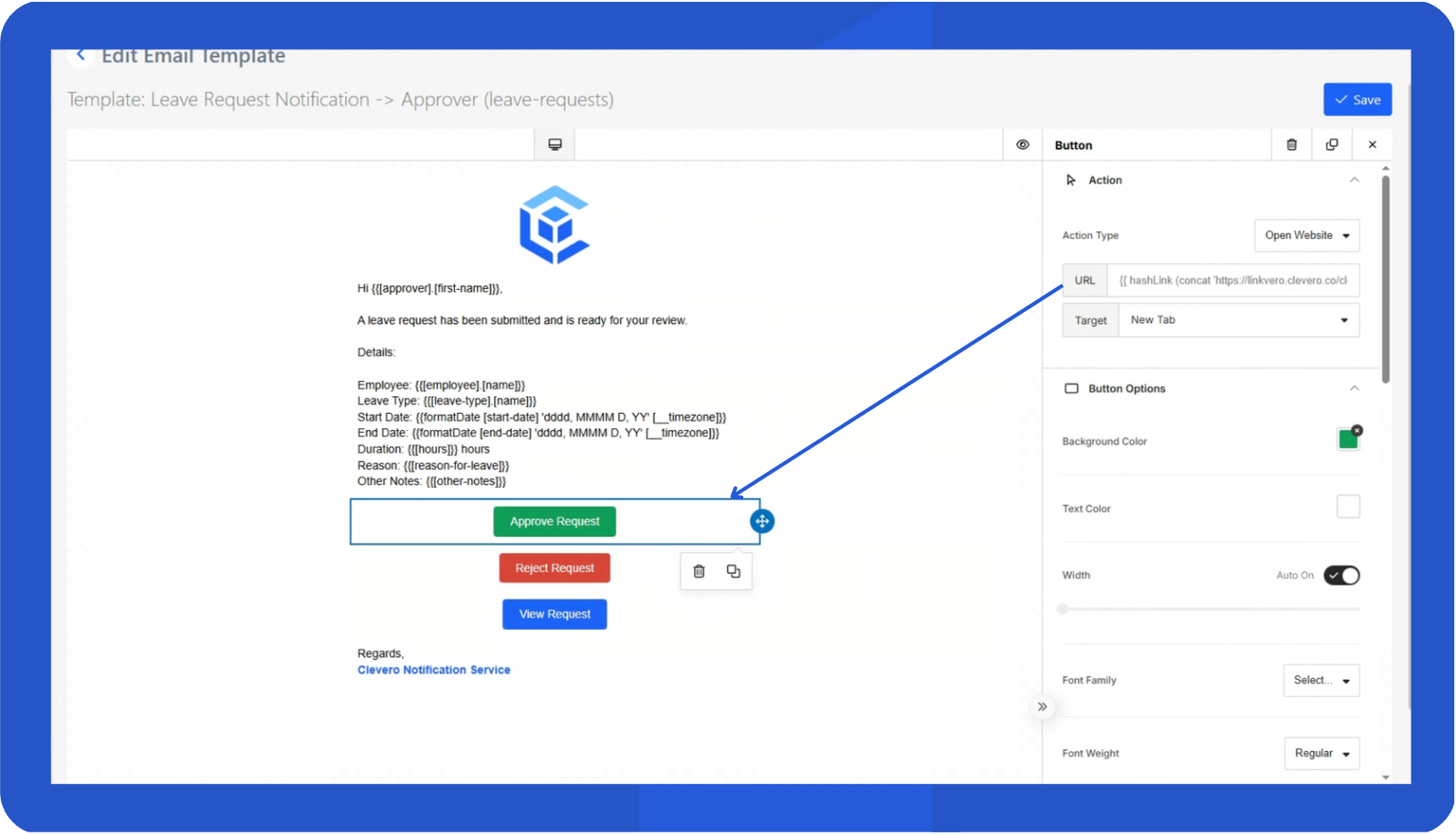 - Click Save to apply the changes to the email template.